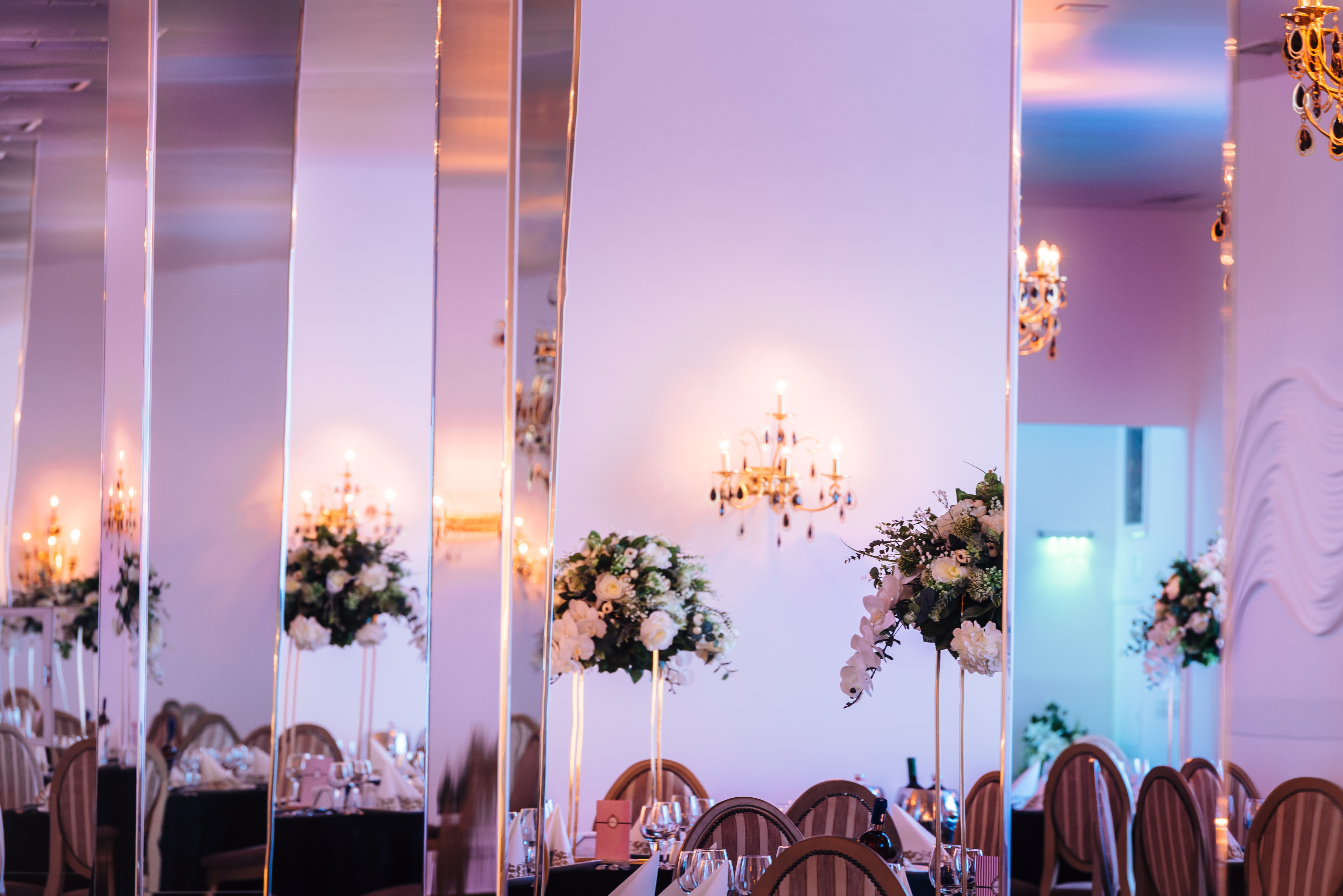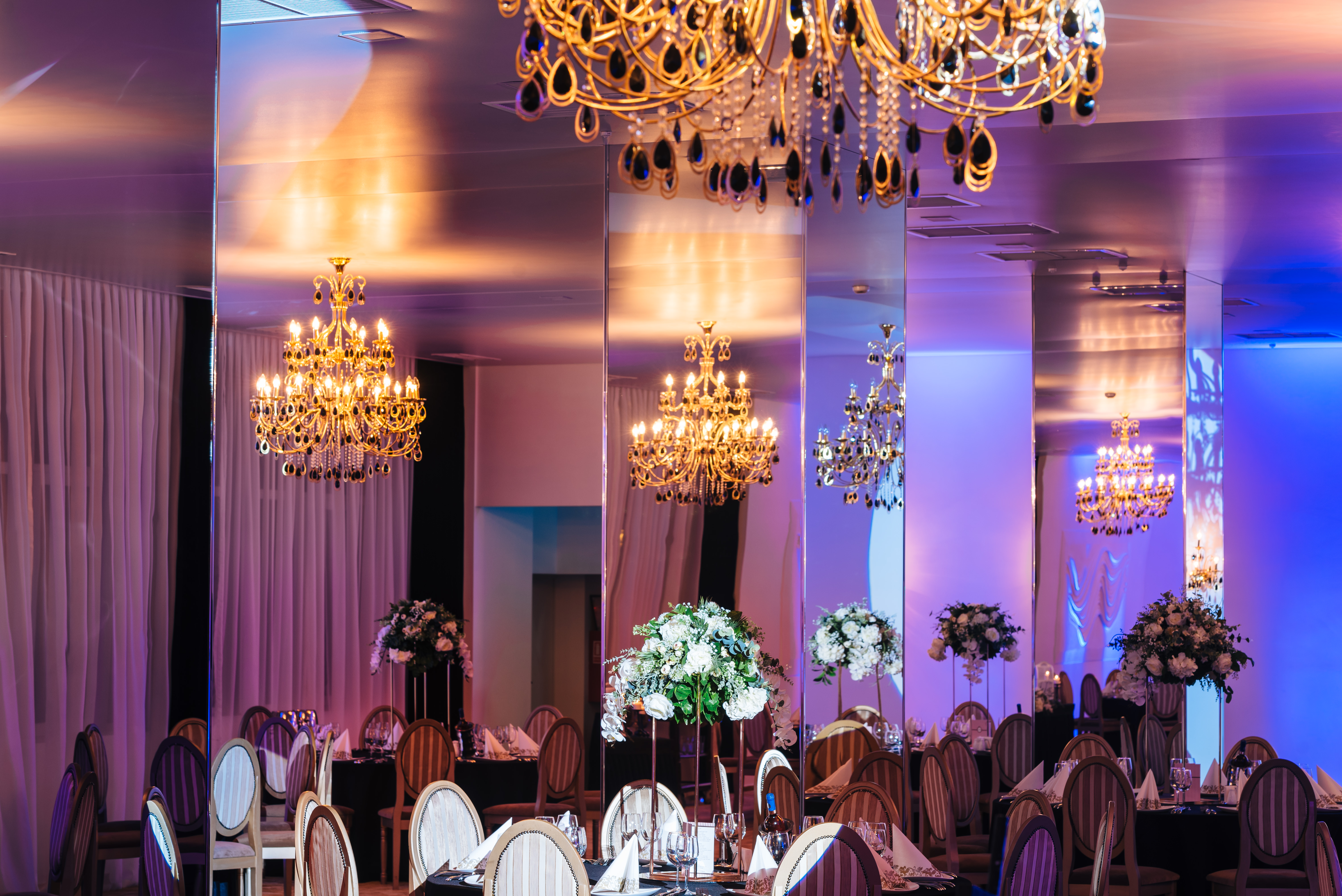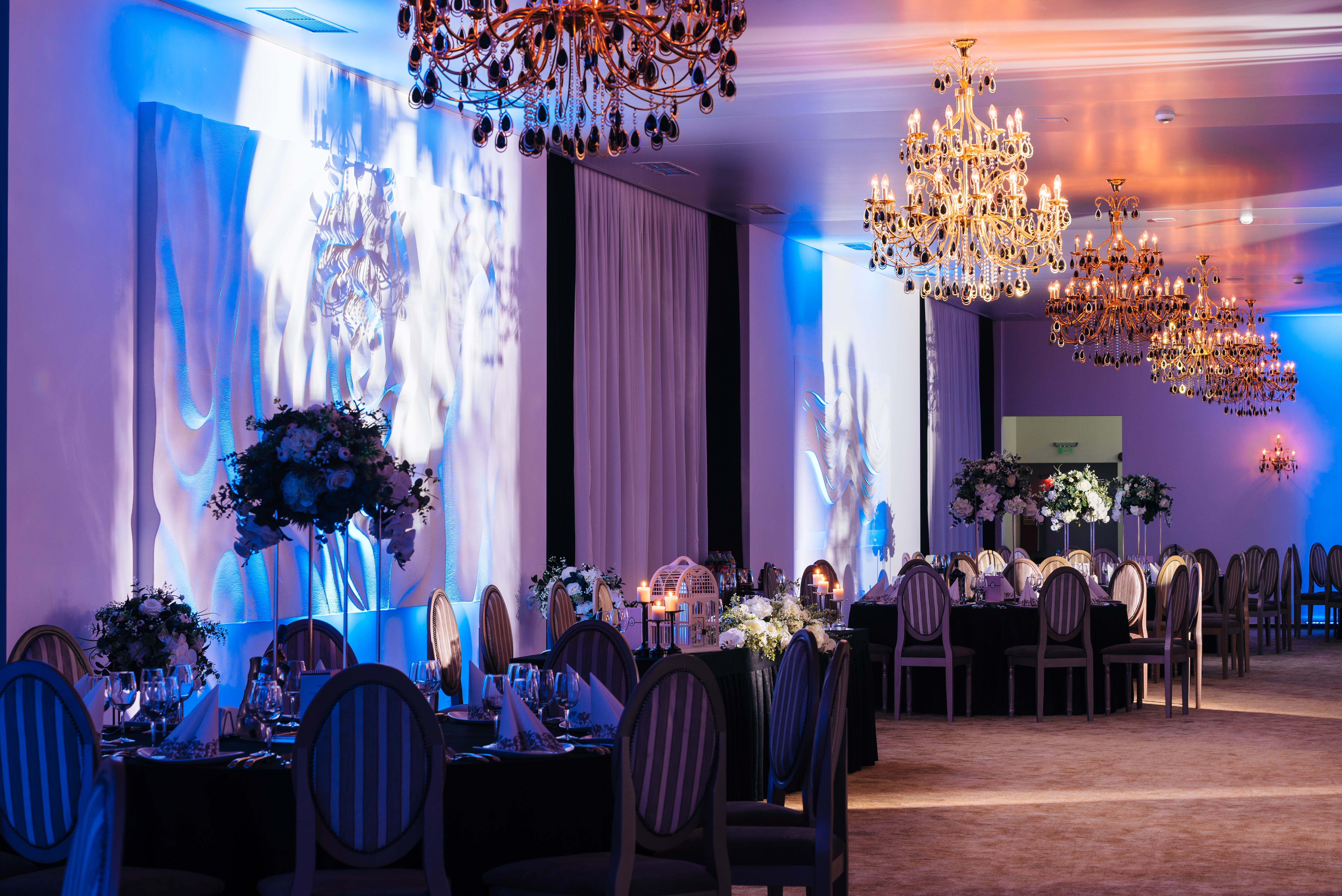 Săli de bal și de petrecere. Sunt spații mari și elegante, destinate pentru petrecerea nunții și pot fi dotate cu o scenă, un ring de dans, un sistem de sunet și iluminat profesionist.