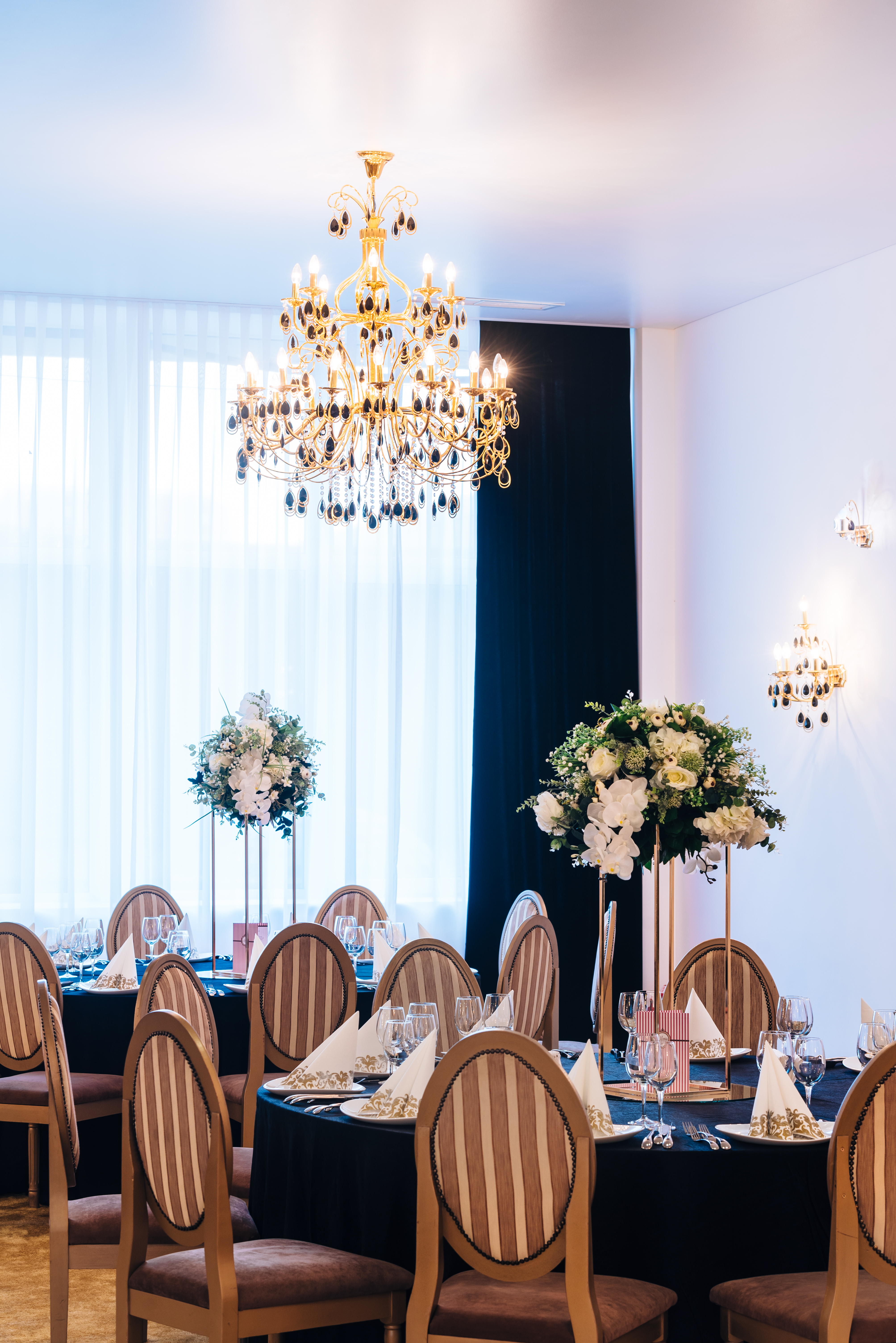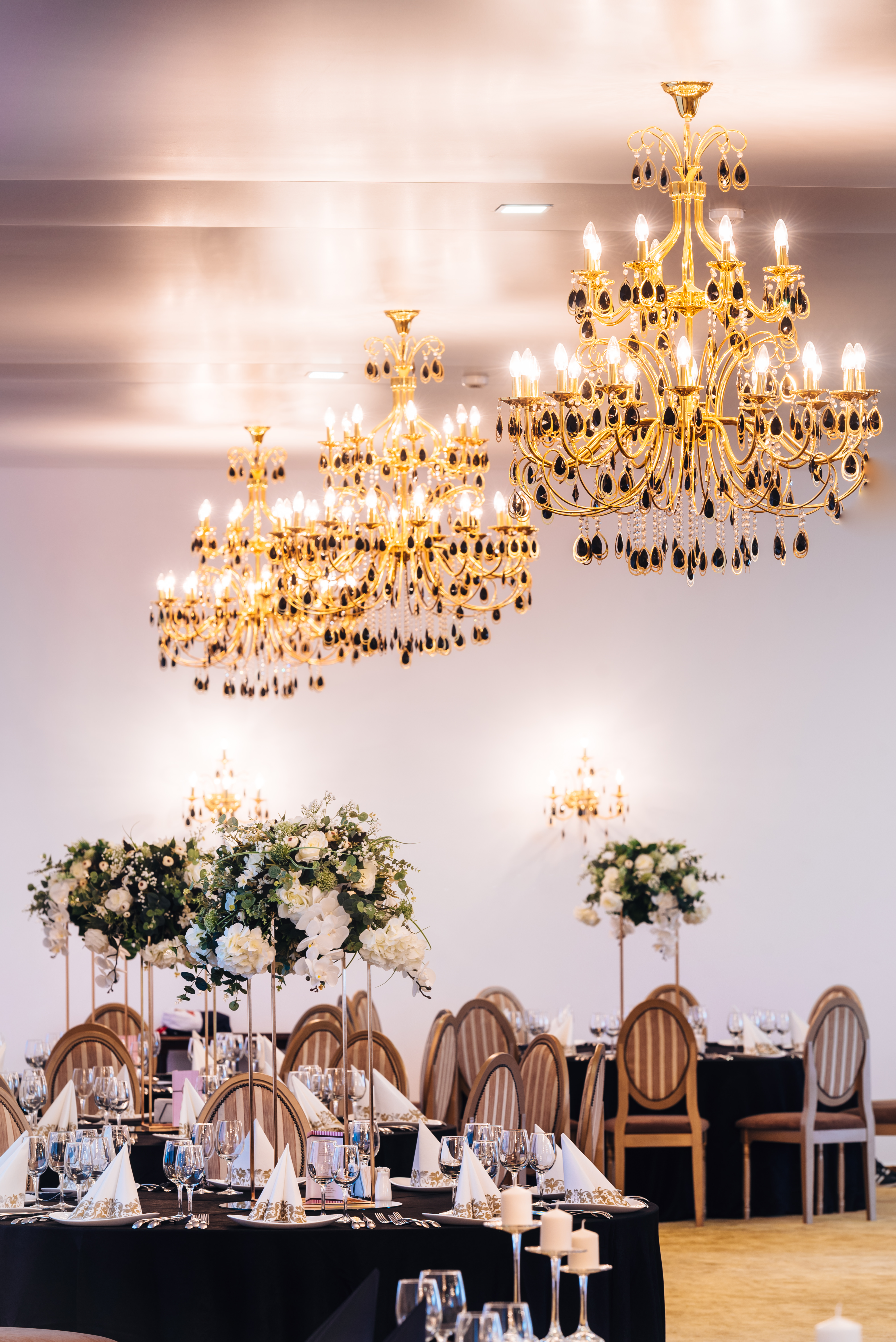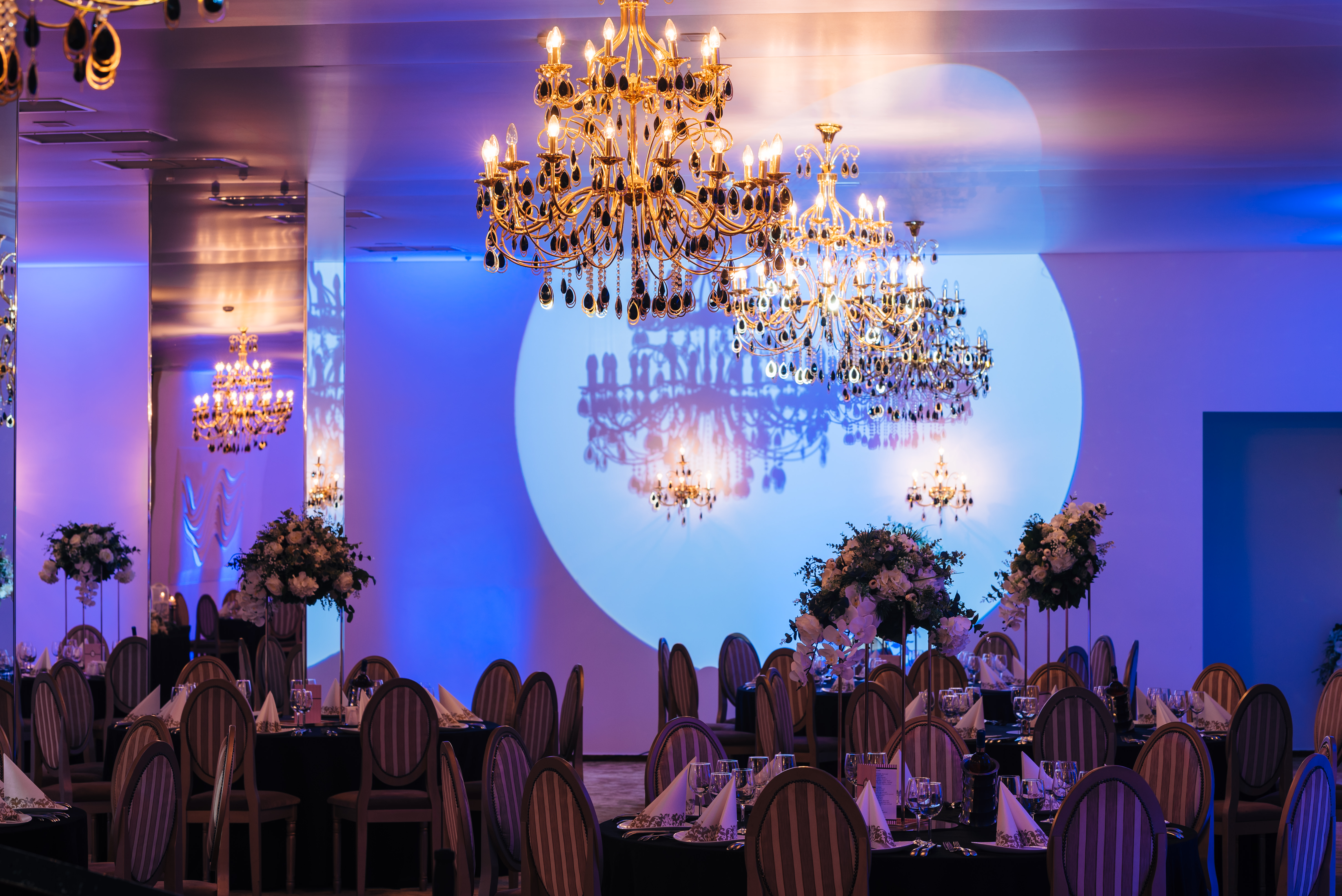 Săli de bal și de petrecere. Sunt spații mari și elegante, destinate pentru petrecerea nunții și pot fi dotate cu o scenă, un ring de dans, un sistem de sunet și iluminat profesionist.